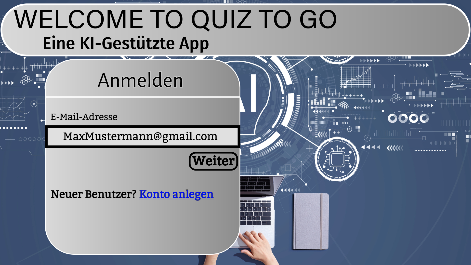 Deutsch Lernen ist oft mit viel Recherche verbunden und wirkt schnell monoton. Gleichzeitig steigt der Bedarf nach modernen Methoden, die Wissen verständlich, interaktiv und motivierend vermitteln. Dieses Projekt entwickelt daher eine Smartphone-App und eine Webanwendung, die mithilfe künstlicher Intelligenz automatisch Quizfragen erzeugen. Nutzerinnen und Nutzer können Themen auswählen oder eigene Dokumente bzw. Fotos hochladen, aus denen die KI individuelle Fragen erstellt. So entsteht eine einfache, spielerische und effiziente Möglichkeit, sich auf Prüfungen vorzubereiten oder neues Wissen zu erwerben.