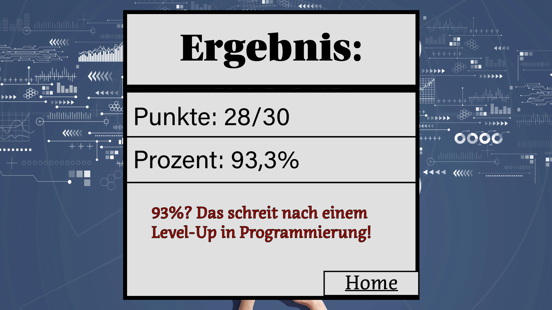 Hier wird das Resultat des abgeschlossenen Quiz angezeigt